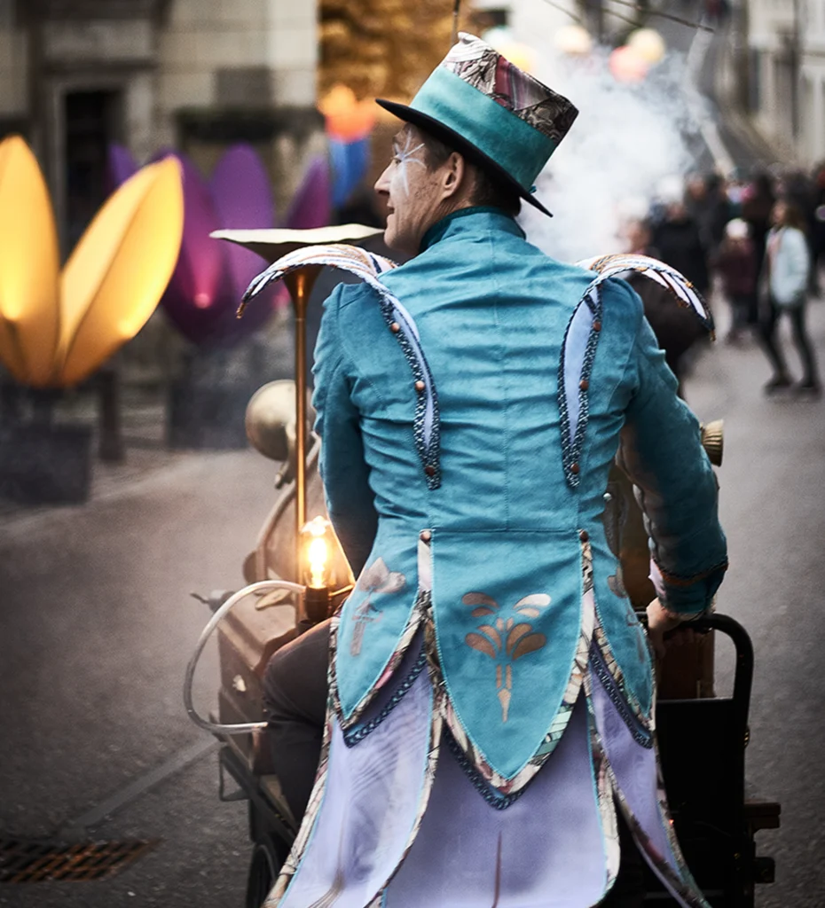 Musique en live, marionnettes, jonglage, échassiers lumineux